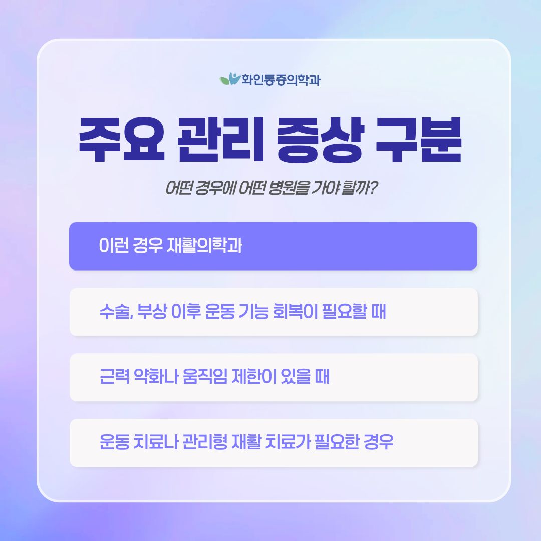 | 비슷해 보이지만 다른 두 진료과, 통증의학과와 재활의학과 차이점 뭐가 다를까요? |